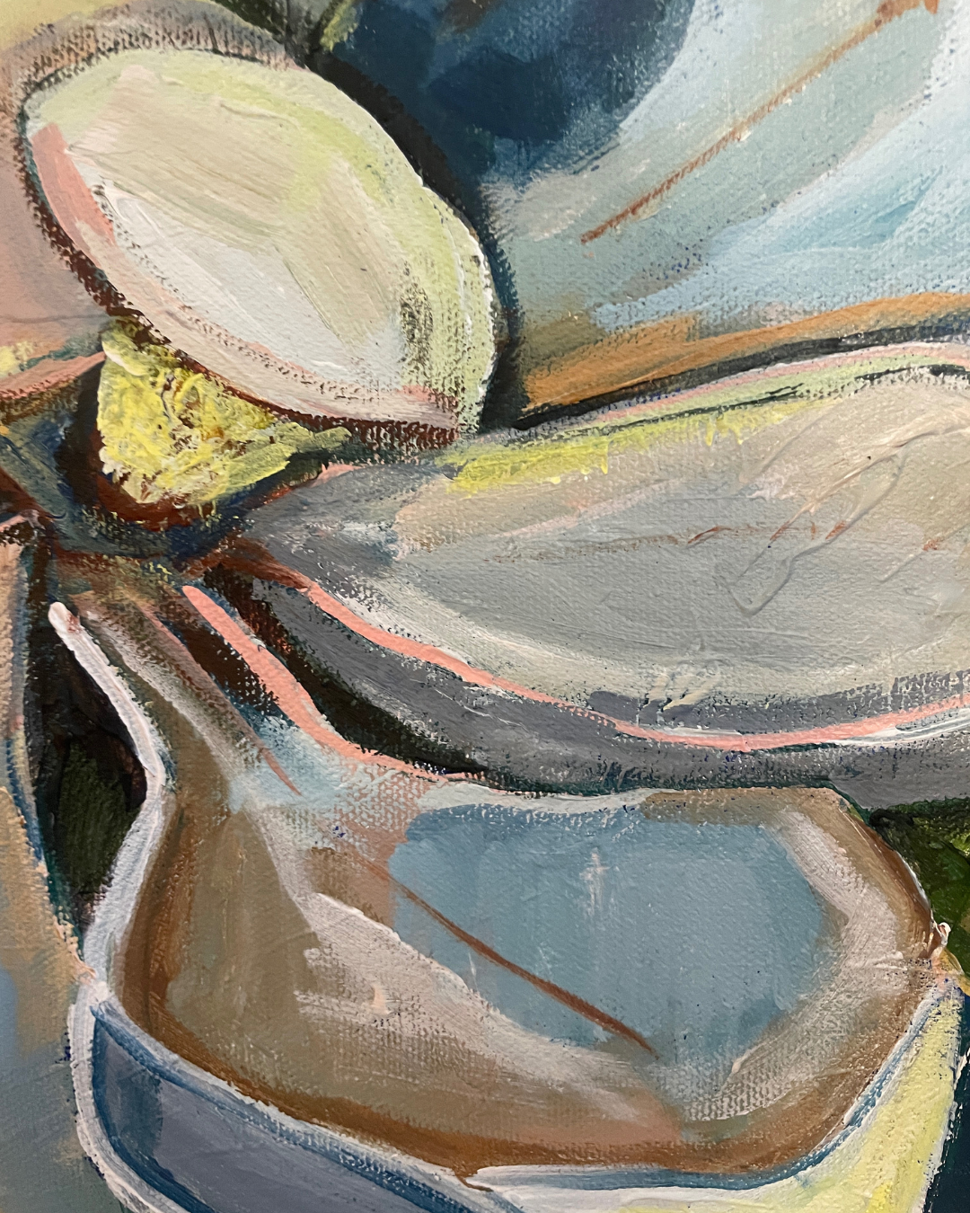 The canvas is sealed with a high gloss varnish for luminous finish and protection. The sides are fully painted, so it’s ready to hang without framing. Of course, it would also look beautiful in a minimal float frame for added elegance.