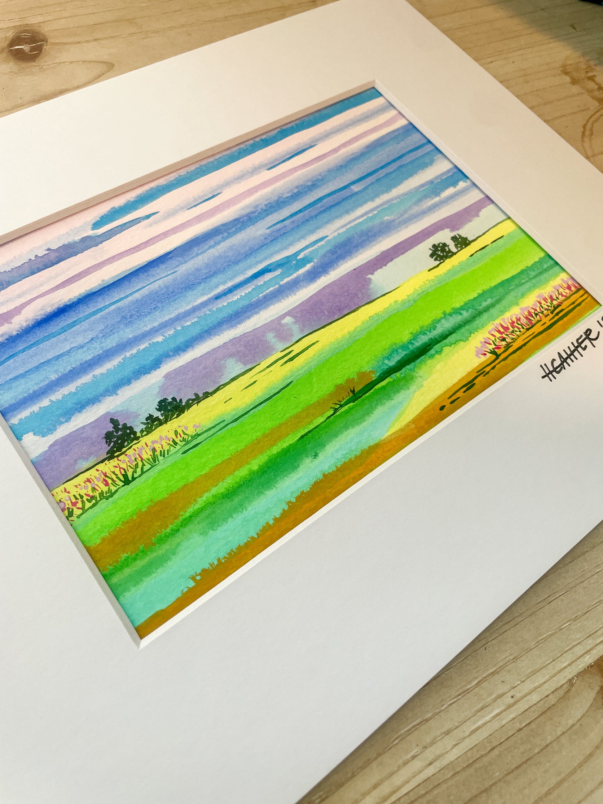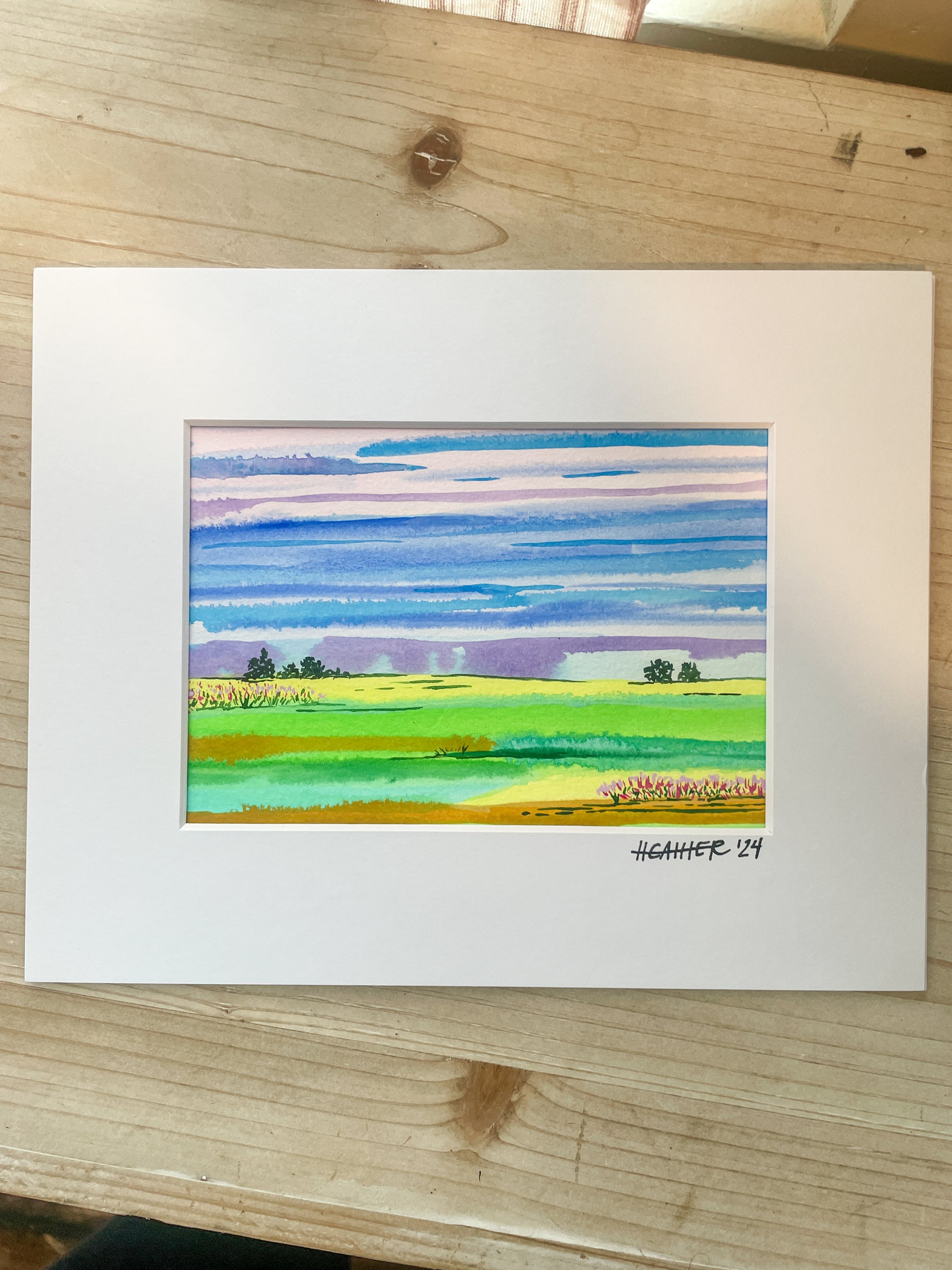 Mini originals make great gifts from friends, family or yourself. This is a 5x7 in painting in a mat that measures 8x10. Painting is hand labeled and signed. (wooden frame is not included- for staging purposes only)